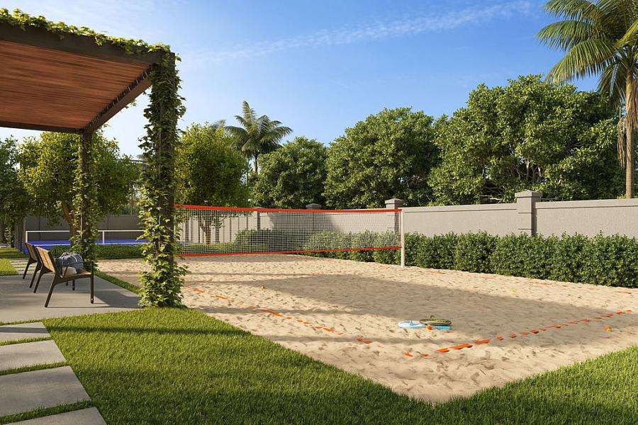 - Possui área externa com lounge e mesas integrada ás quadras esportivas
