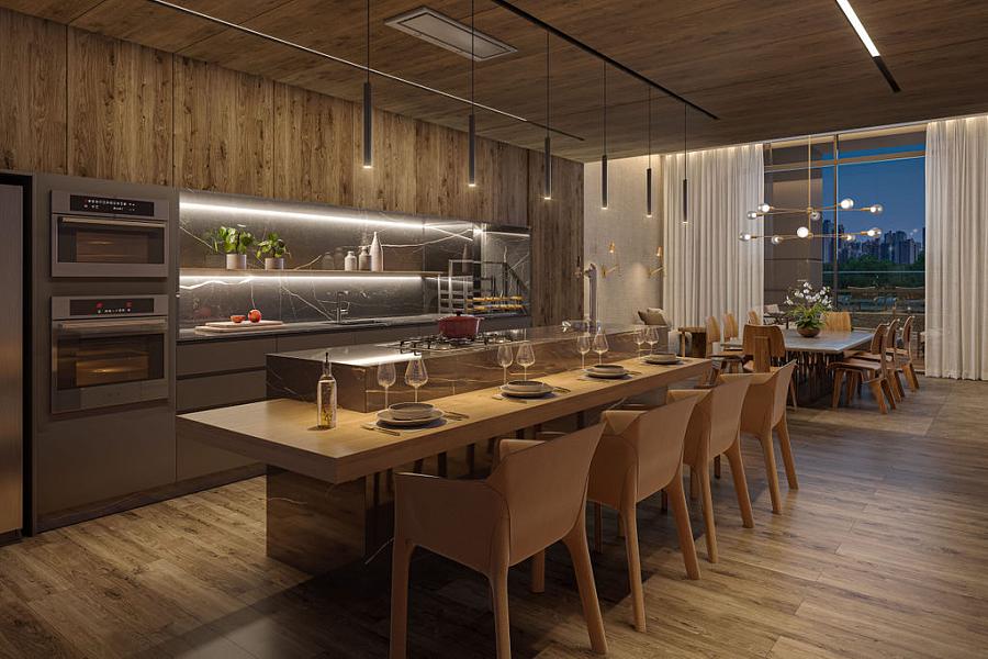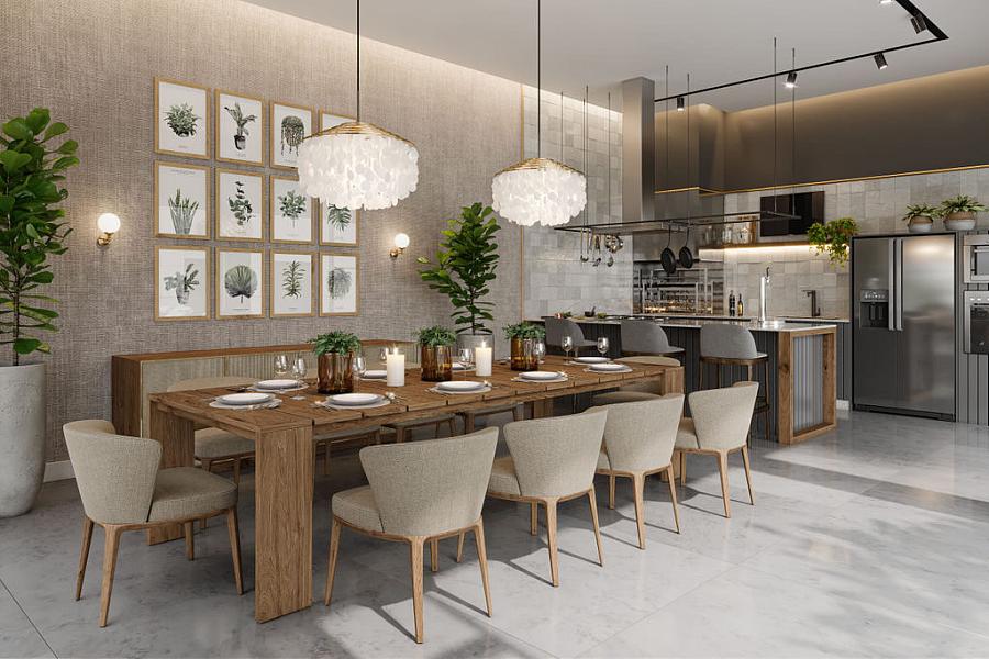- Espaço gourmet integrado ao salão com churrasqueira
