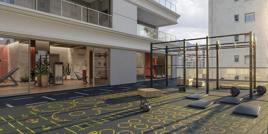 - Integrada ao terraço descoberto para Espaço Cross (treinamento funcional)