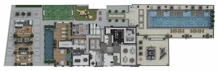 - Integrado ao Salão de Festas, Espaço Gourmet e Piscina
