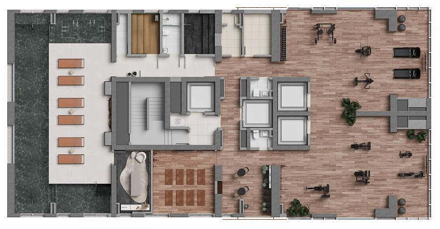 - 5 vagas de garagem, com 1 ponto de abastecimento para carros elétricos por apartamento